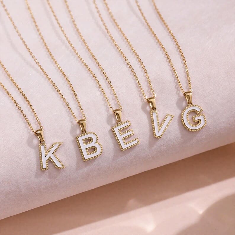 Gold Initial Necklace with Enamelled Pendant
